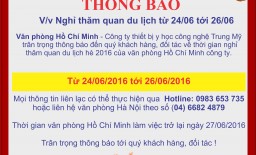 THÔNG BÁO Nghỉ thăm quan du lịch từ 24/06 tới 26/06